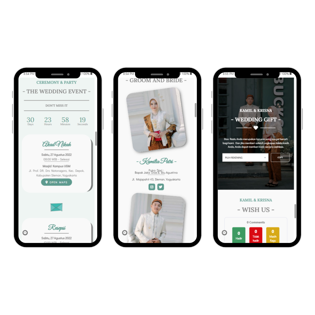 Buat dan bagikan undangan pernikahan kamu dengan berbagai pilihan tampilan undangan yang kekinian, membuat pernikahanmu makin berkesan dengan berbagai macam desain undangan yang menarik dan tampil baik di semua perangkat digital.